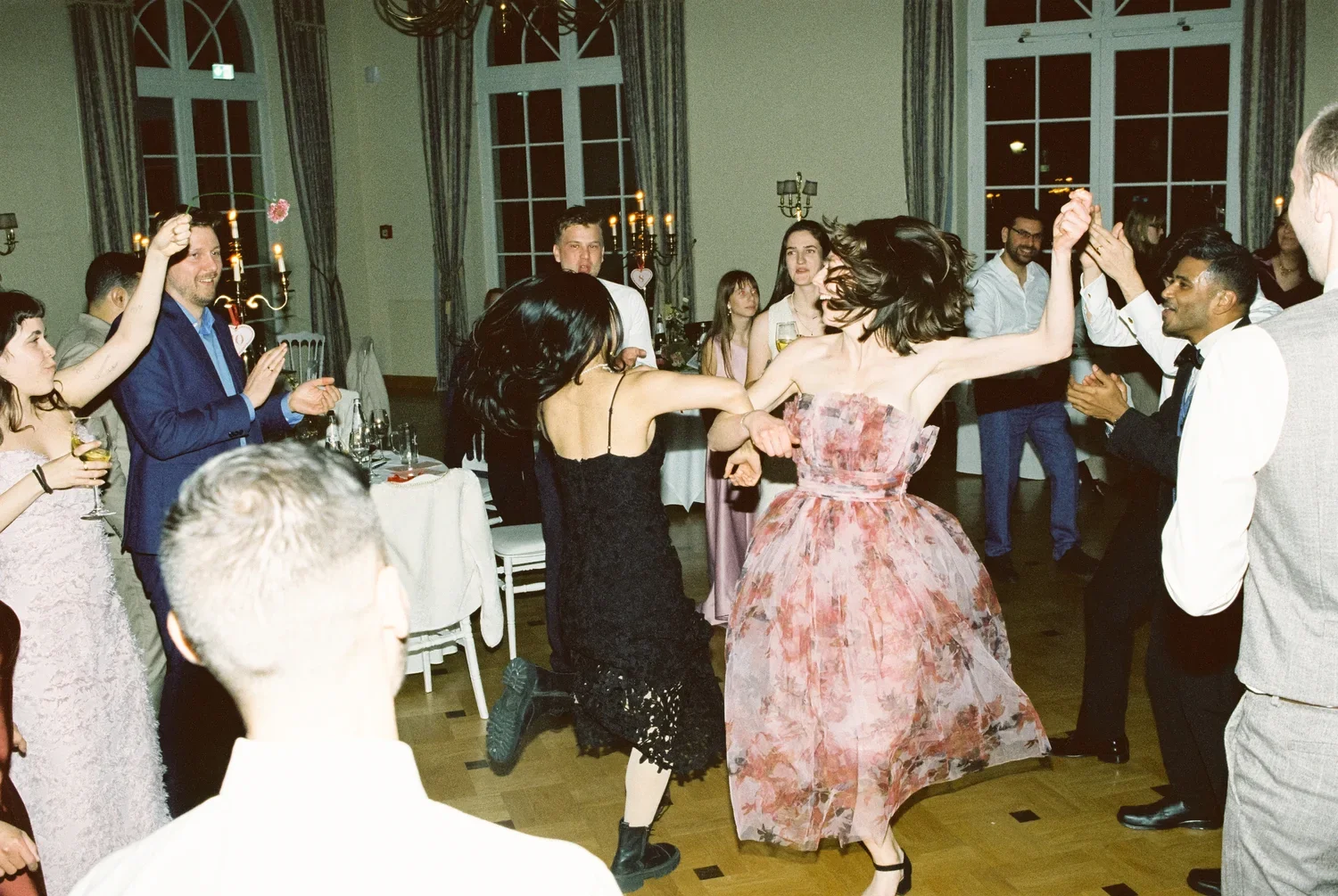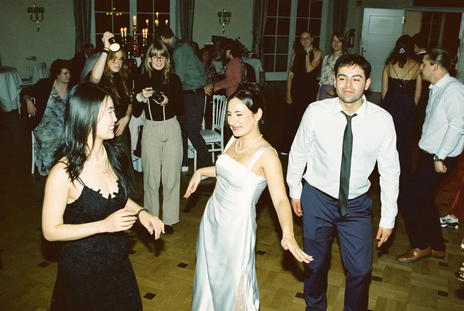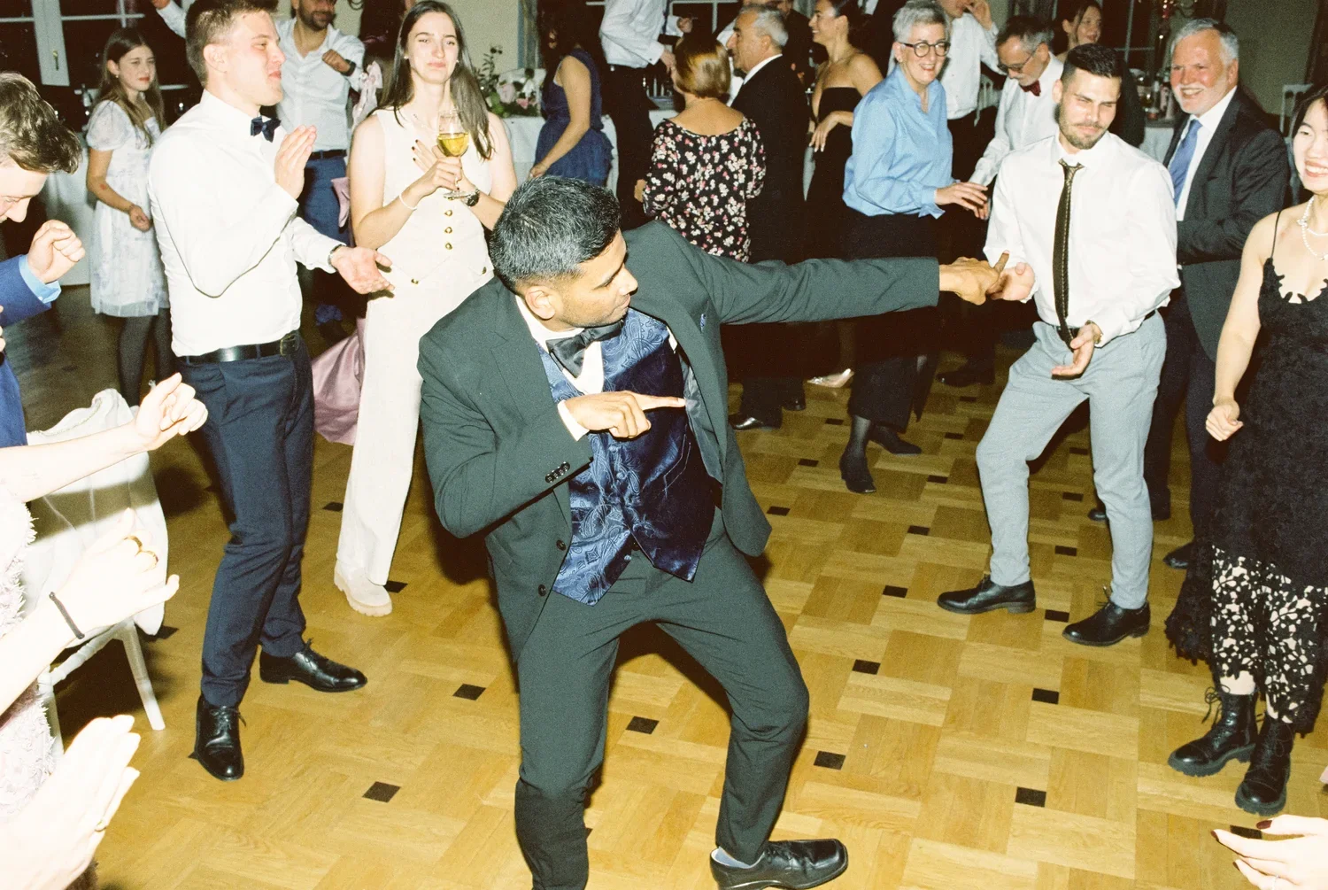 There is a specific frequency to a wedding night that only analog film can truly catch. It’s the grain that fills the space between a couple’s quiet anticipation and the loud, unfiltered energy of a crowded room. For Munira and Felix, the evening wasn’t about a scripted performance; it was about the transition from the architectural silence of a grand staircase to the heat of the dancefloor.